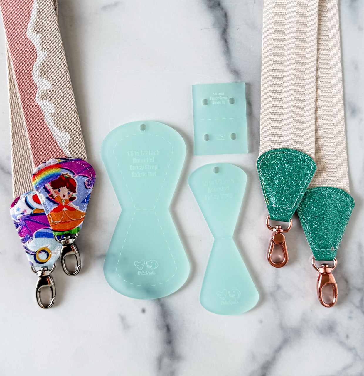 ROUNDED Fancy Straps - Size 1.5" Webbing To 1/2" Hook - FROSTED SEAFOAM - Set of 3 - Acrylic Template