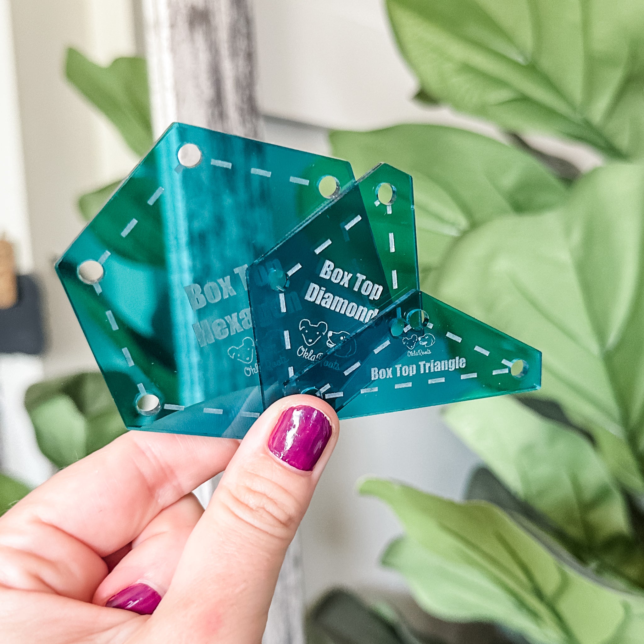English Paper Piecing Set of 3 - 1/4" Seam Allowance - "Box Top" Style - Teal - Acrylic Template