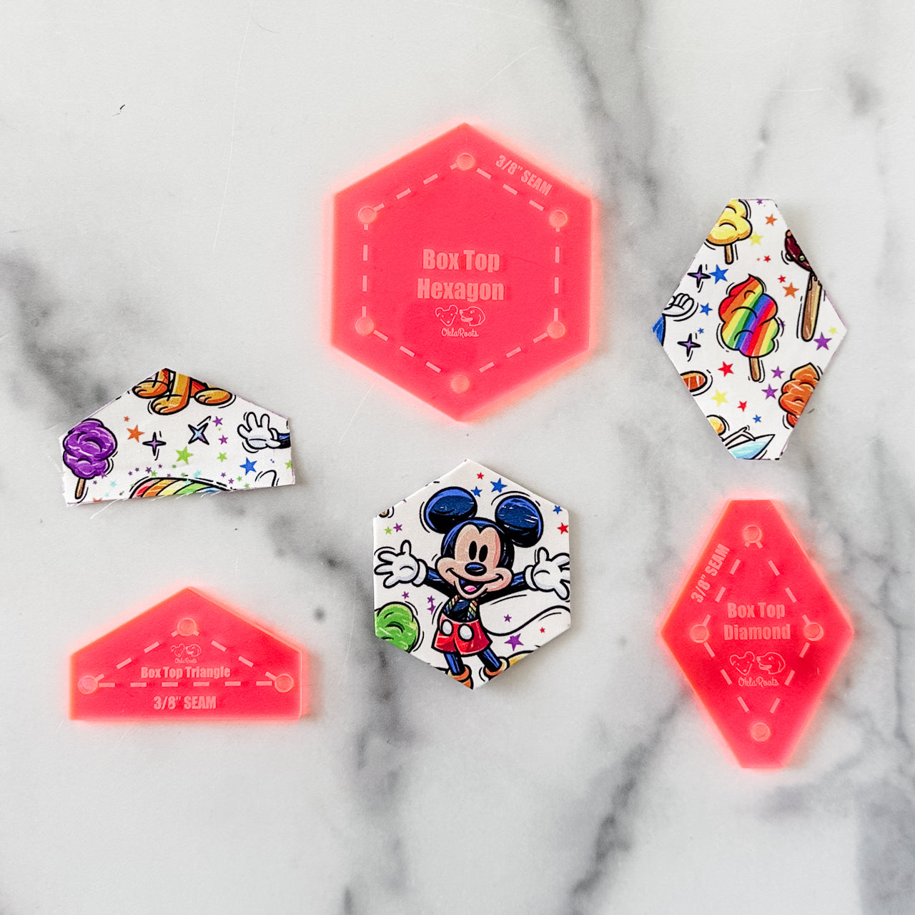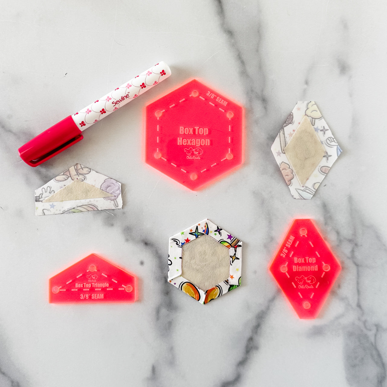English Paper Piecing Set of 3 - 3/8" Seam Allowance - "Box Top" Style - Hot Pink - Acrylic Template
