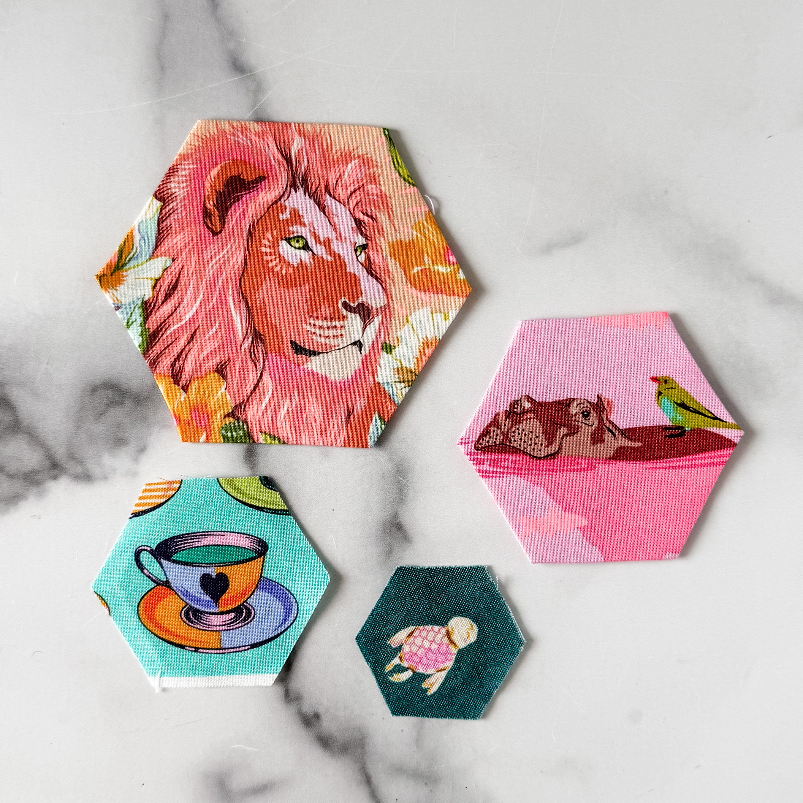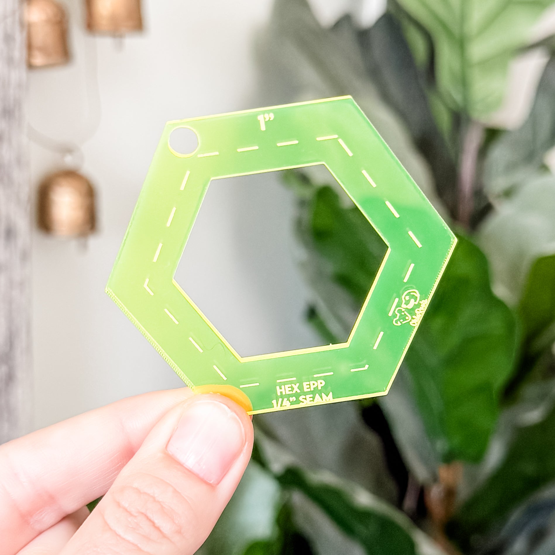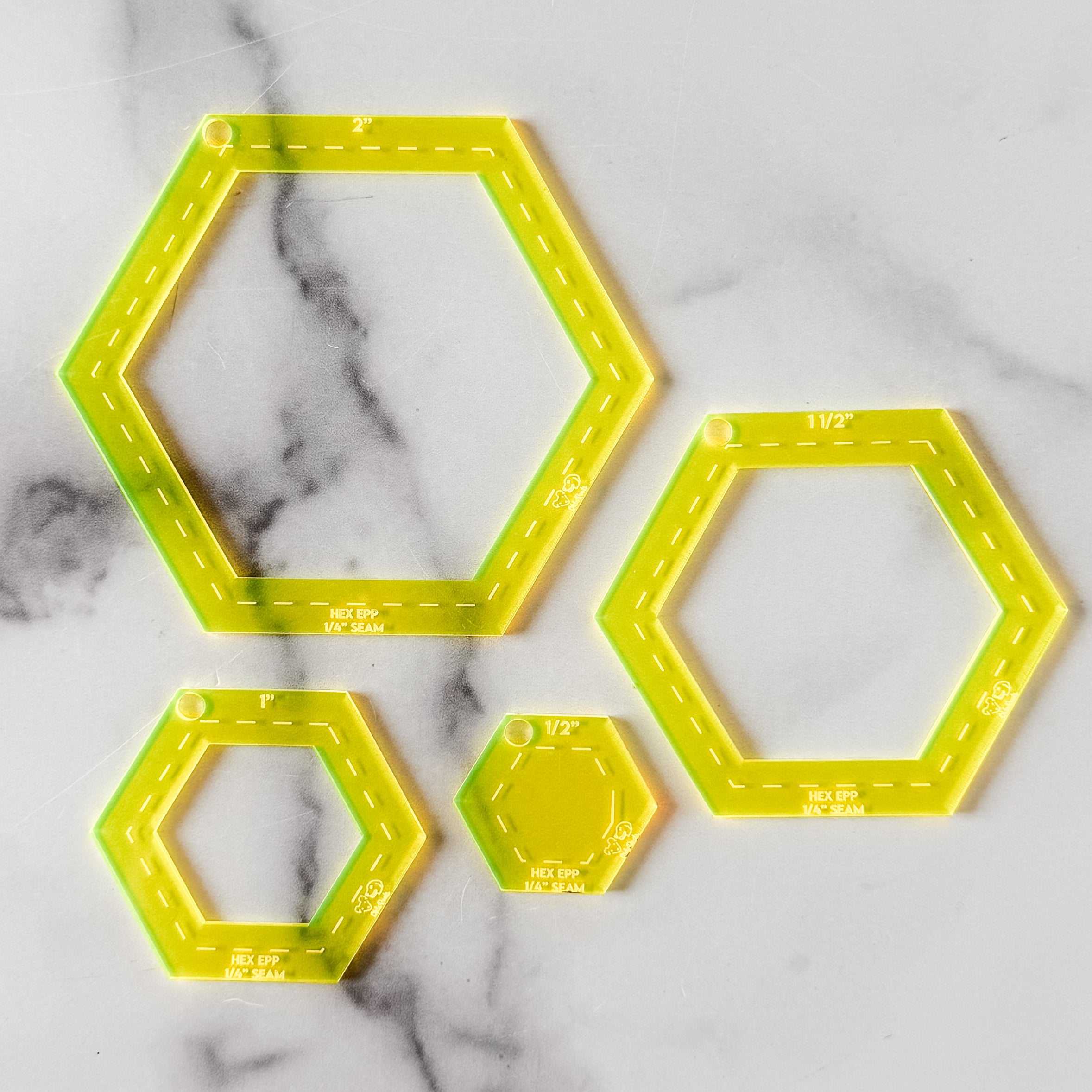 English Paper Piecing Set of 4 - 1/4" Seam Allowance - Hexagons - Neon Yellow - Acrylic Template