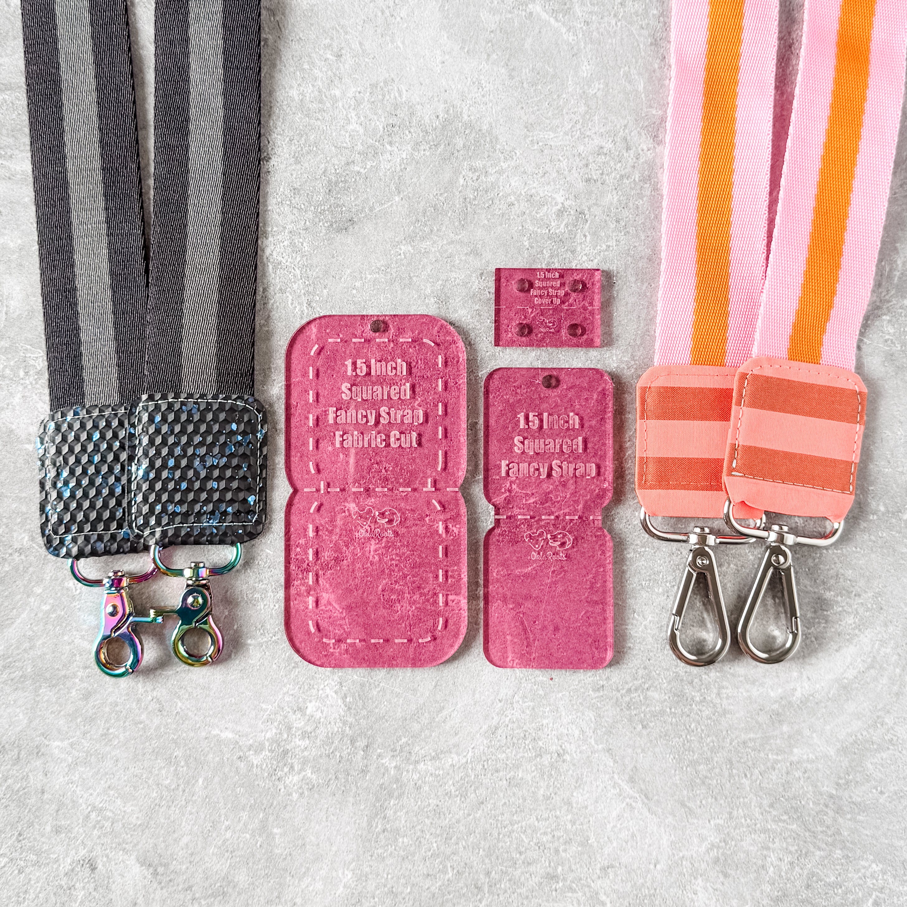 SQUARED Fancy Straps - Size 1.5" - Pink - Set of 3 - Acrylic Template
