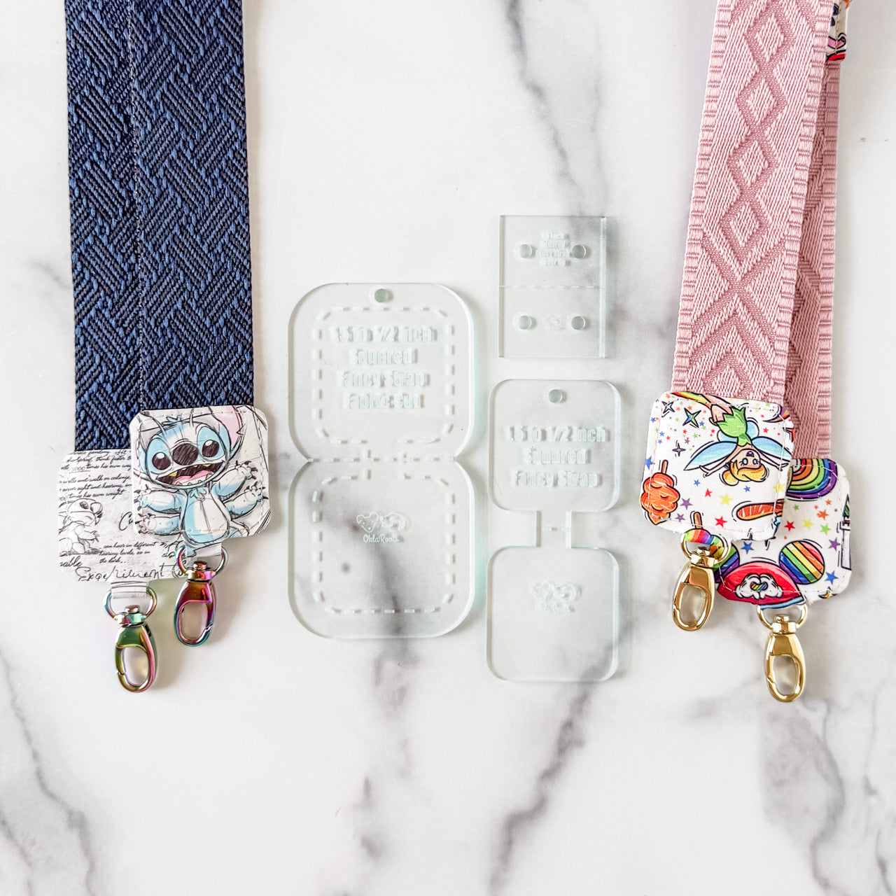 SQUARED Fancy Straps - Size 1.5" Webbing To 1/2" Hook - SODA - Set of 3 - Acrylic Template