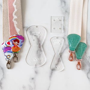 SQUARED Fancy Straps - Size 1" Webbing to 1/2" Hook - CLEAR - Set of 3 - Acrylic Template