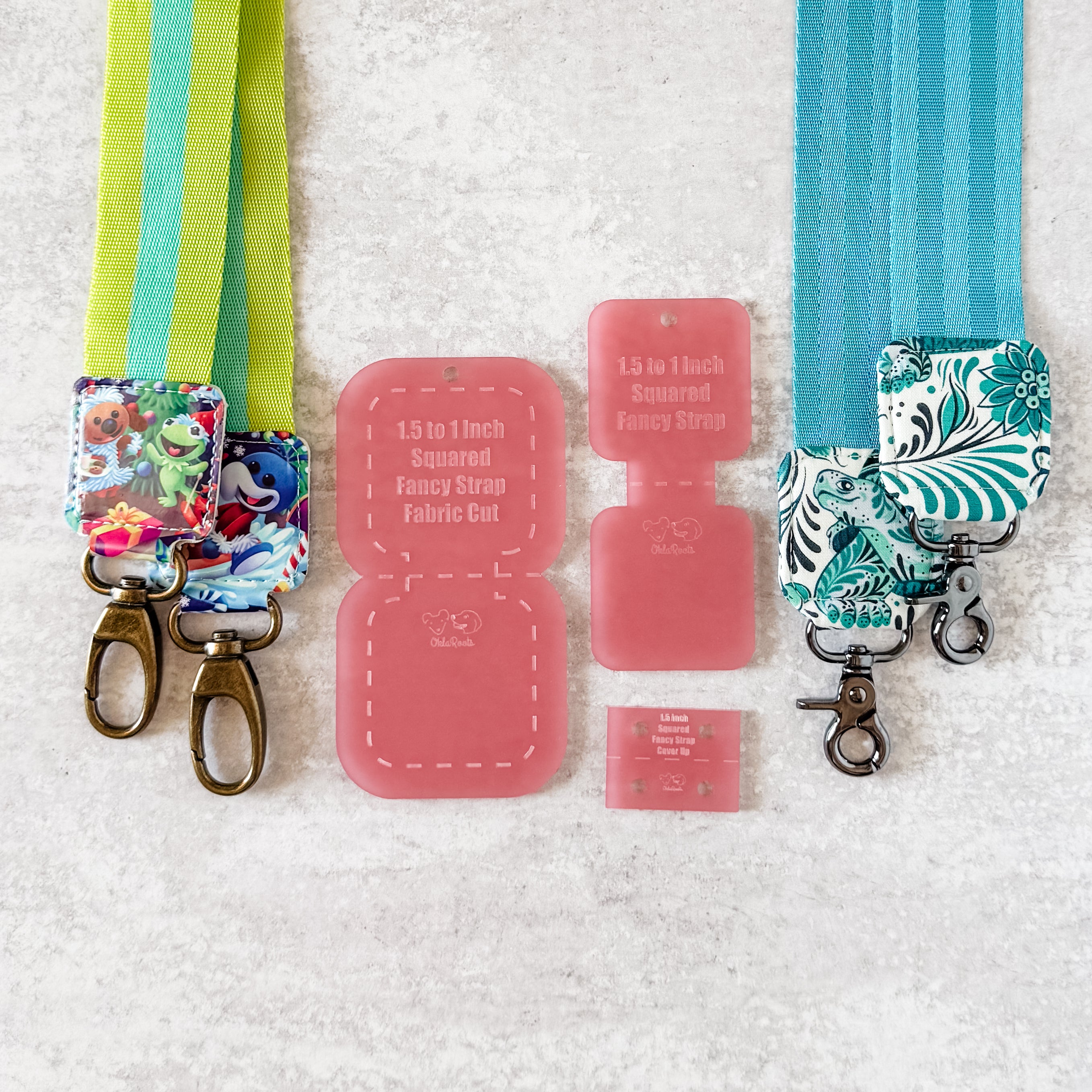 Squared Fancy Straps - Size 1.5" Webbing To 1" Hook - Frosted Watermelon - Set of 3 - Acrylic Template