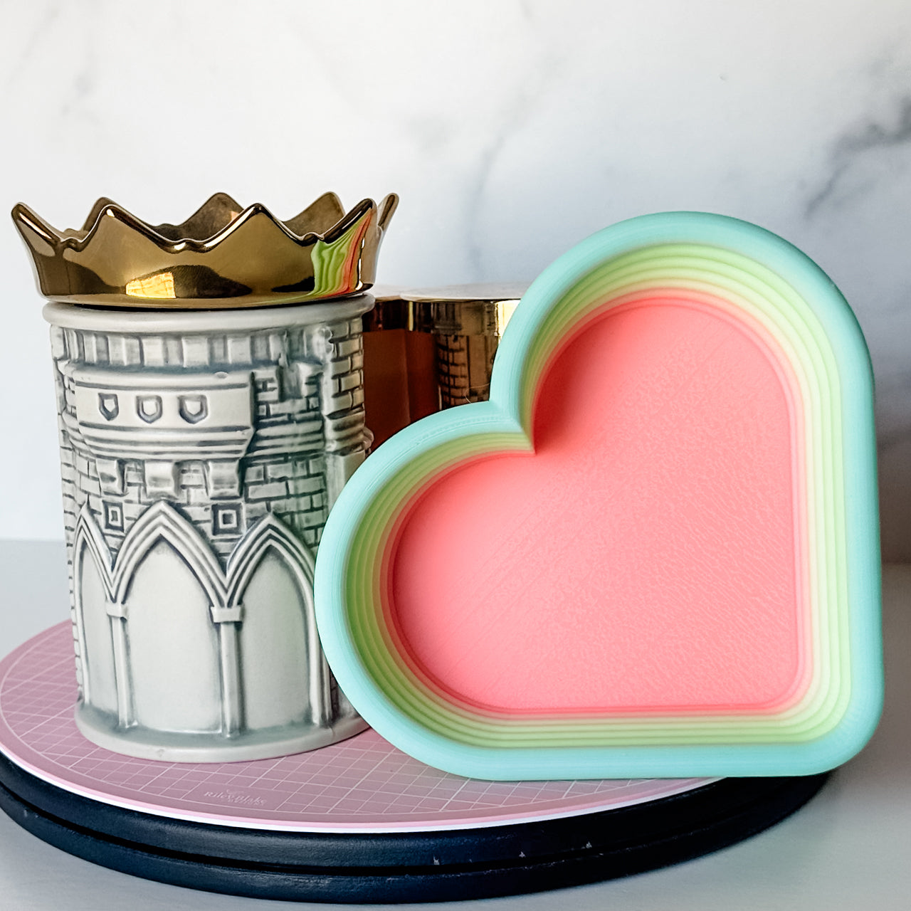 Tiered Large Heart Shaped Craft Bowl - Peach To Teal