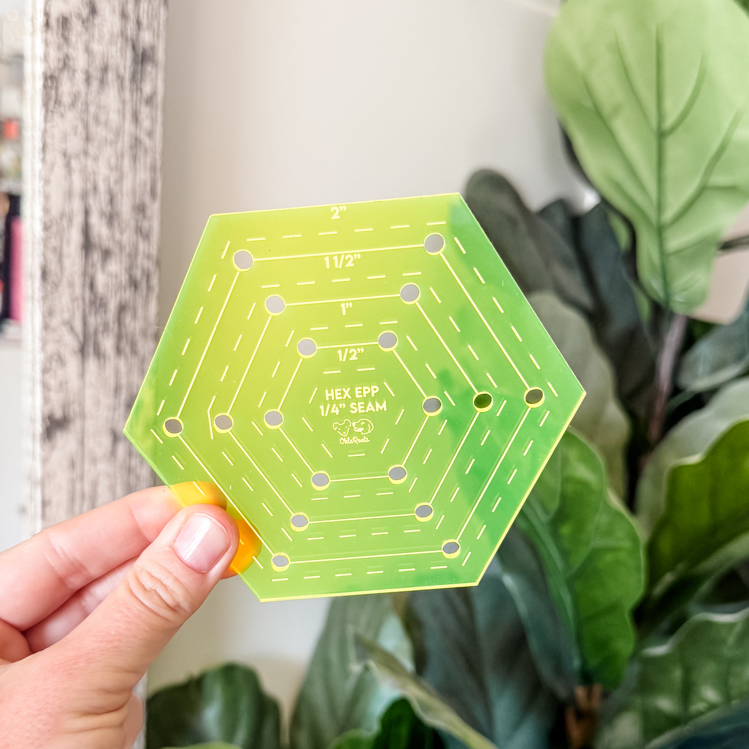 EPP Tool TESTER - Hexagon - Half Inch Markings - 2" Side Max - Neon Yellow - Acrylic Template